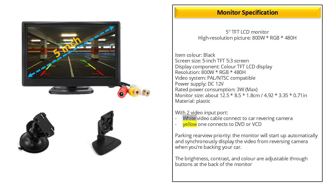 - 1 x Monitor 5inch